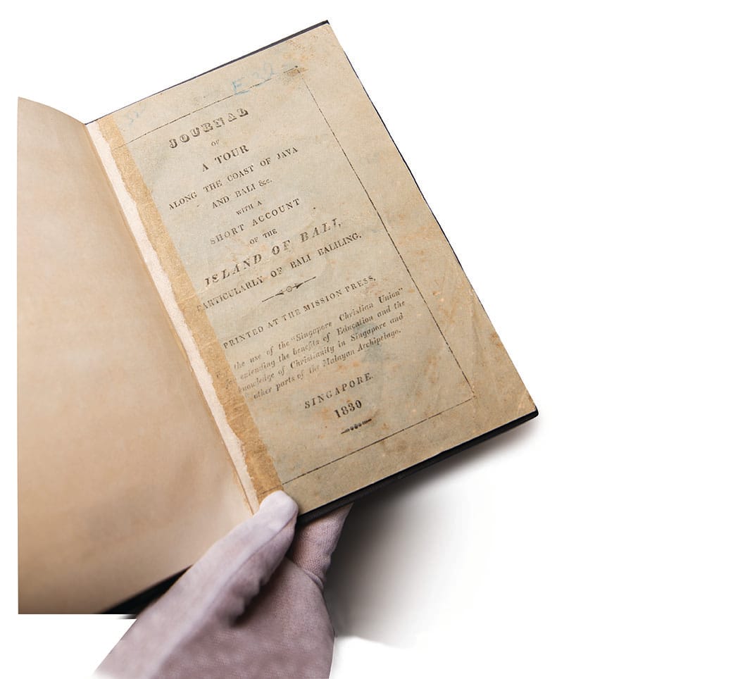 The earliest extant English publication printed in Singapore in the National Library’s collection is a report on Java and Bali published in 1830.