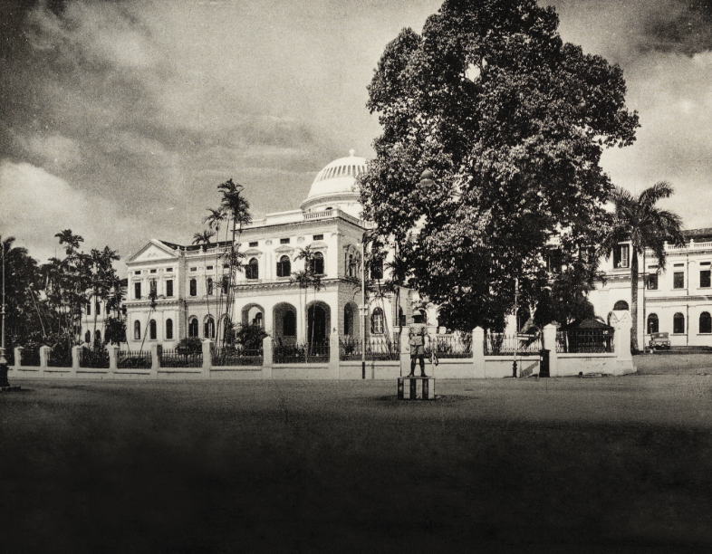 Exterior view of the Raffles Library and Museum at Stamford Road in this photo taken in the 1930s, during the time when Padma Daniel and Kate Edith Savage-Bailey were working there as librarians. Courtesy of the National Museum of Singapore, National Heritage Board.
