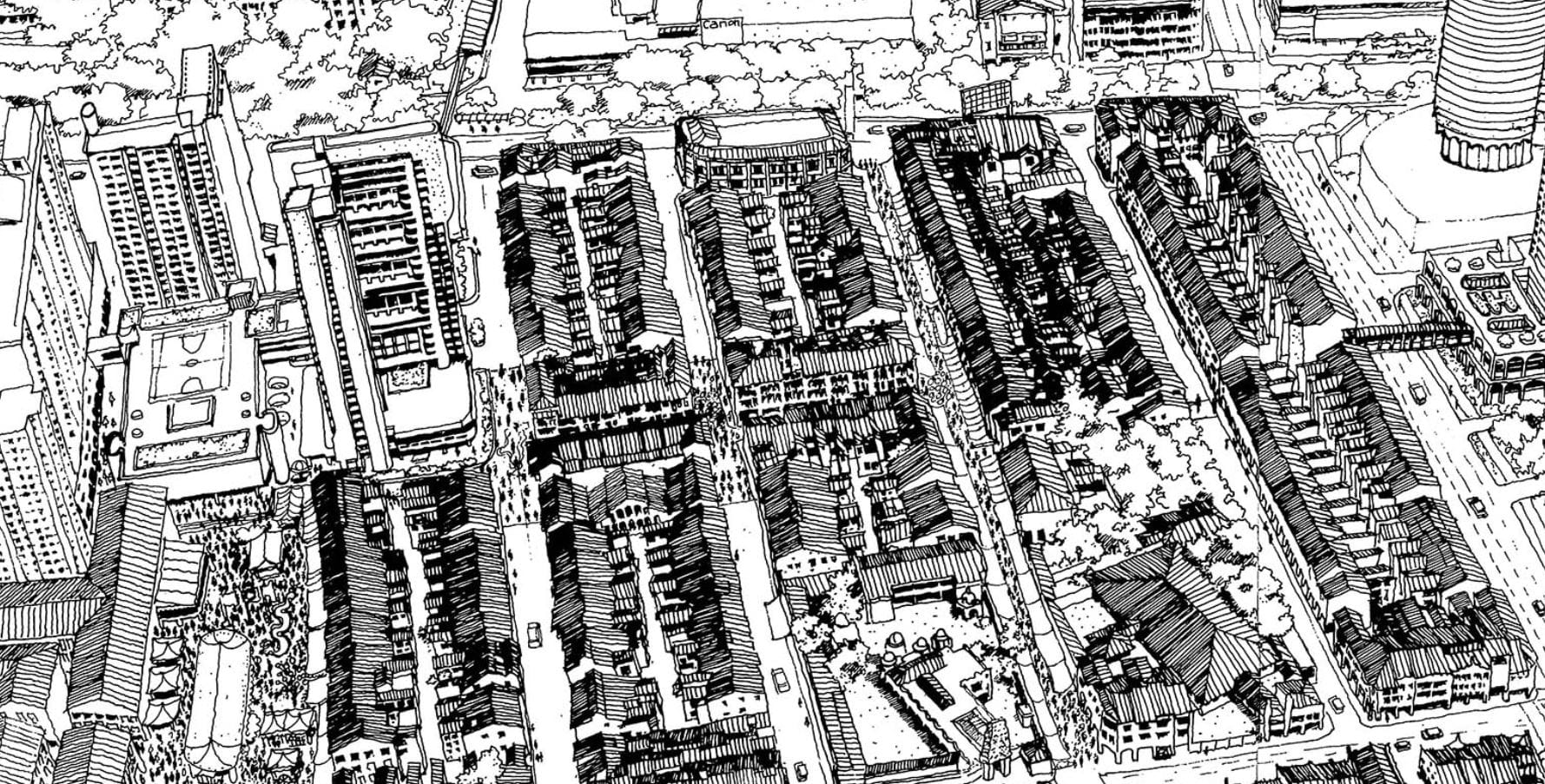 A 1980s aerial illustration of Kreta Ayer, the core of Chinatown. The Urban Redevelopment Authority’s 1986 conservation plan of the city centre identified six historic areas for conservation, one of which was Chinatown. Courtesy of the Urban Redevelopment Authority.