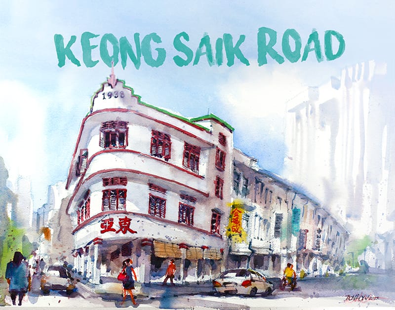 The iconic Tong Ah Eating House at the junction of Keong Saik and Teck Lim roads. Watercolour painting by Don Low, 2014. Courtesy of Don Low.