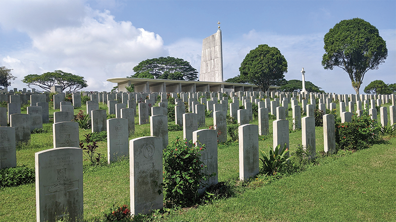 The Kranji War Cemetery with the Singapore Memorial in the background, 2022. Photo by and courtesy of Janice Loo.