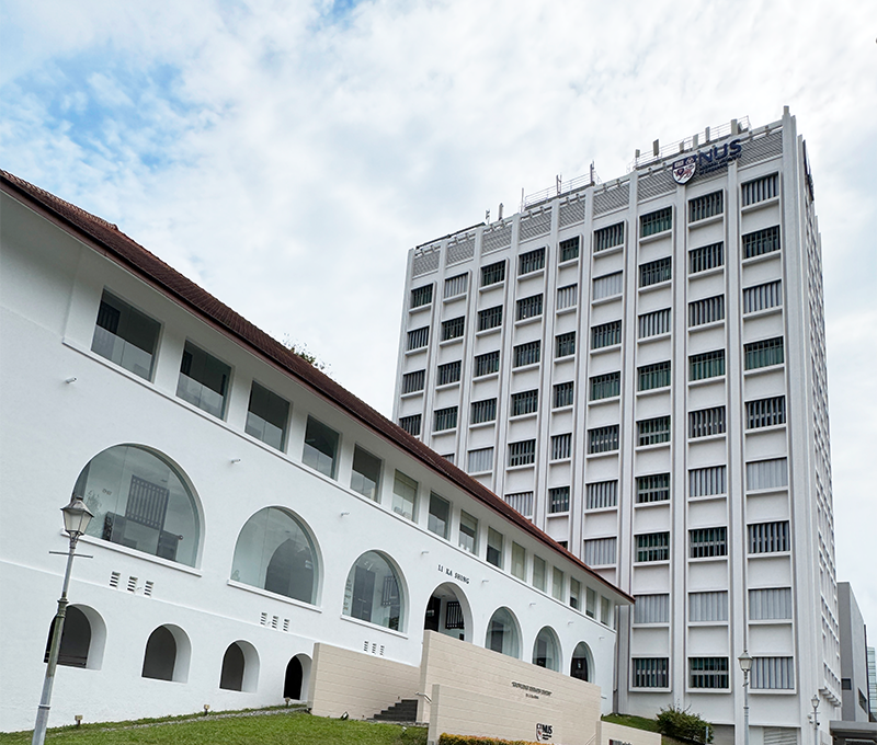 The Li Ka Shing Building with the Tower Block at the National University of Singapore campus in Bukit Timah, 2026. The building was the old Block A of the University of Malaya. The Tower Block, formerly the Science Tower of the University of Singapore, was opened by Prime Minister Lee Kuan Yew on 1 July 1966.Photo by Jimmy Yap.