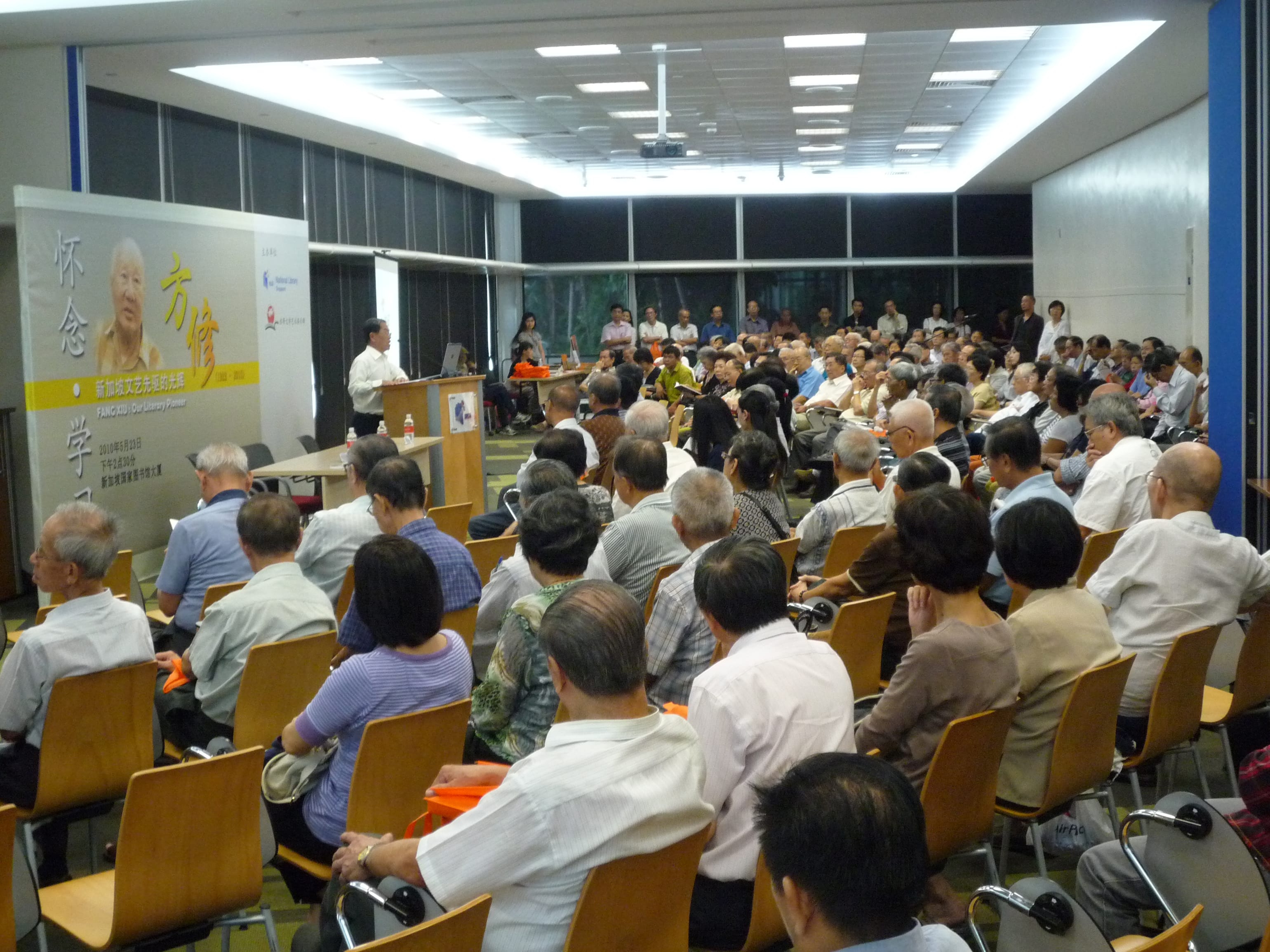 The National Library Board and the Tropical Literature & Art Club jointly organised a commemorative public forum on 23 May 2010, in recognition of Fang Xiu's achievements and contributions. The forum attracted about 200 people, including Fang Xiu’s family members and friends, writers, admirers and scholars who came to share their thoughts about Fang Xiu, his legacy and works. Ngian Lek Choh, Director of National Library, delivered the opening speech. Two main speakers gave a critical review of Fang Xiu's works. Some participants composed songs and poems in praise of Fang Xiu while others shared their anecdotes about Fang Xiu and how he had encouraged and supported them in their journeys towards becoming writers.