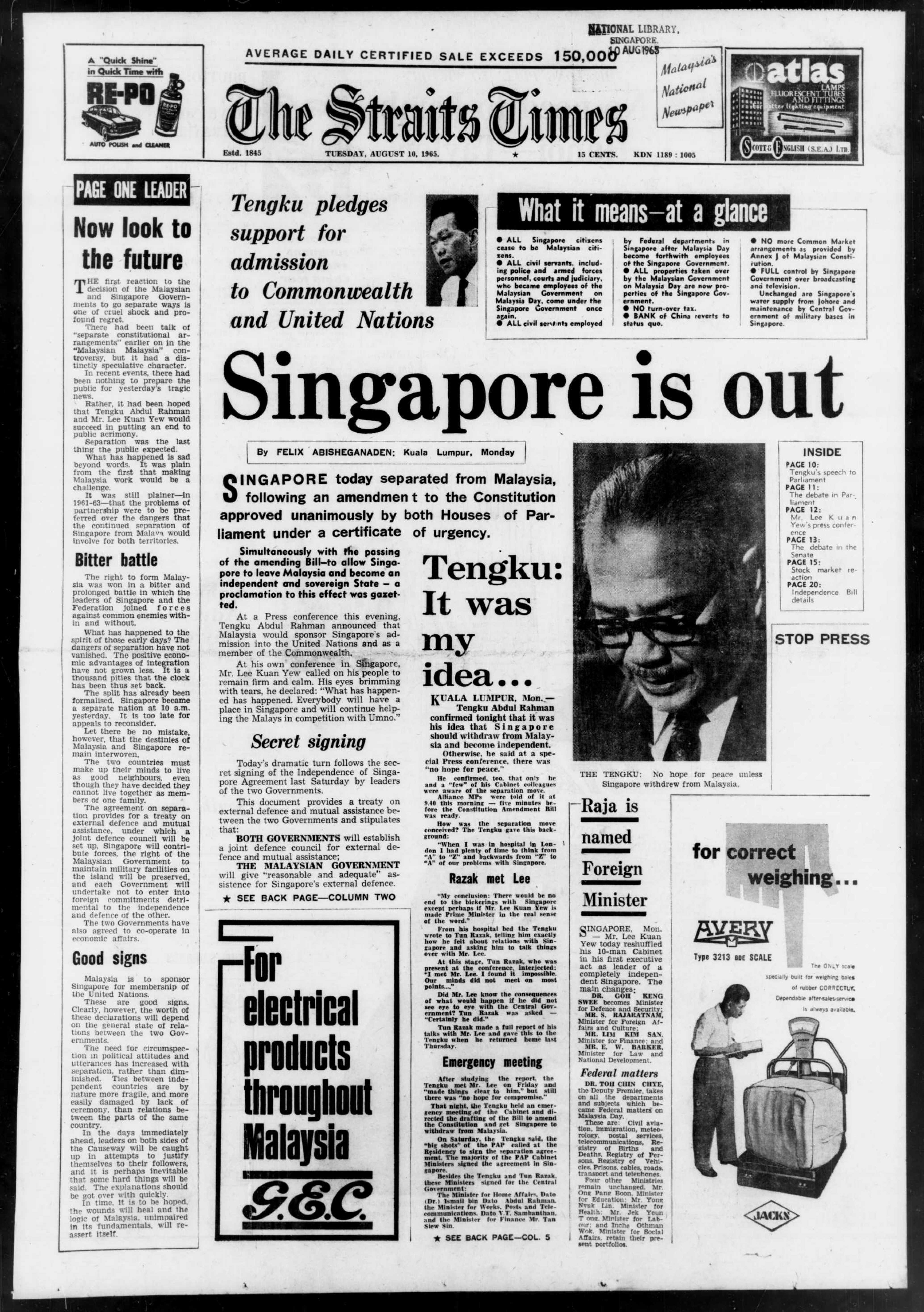 The Straits Times, 10 August 1965. (From NewspaperSG)