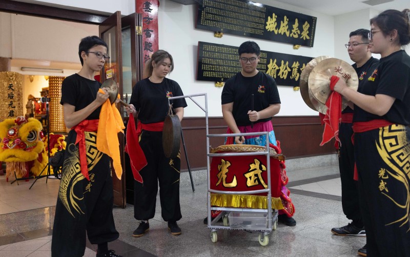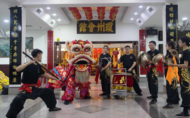 Guang Wu Club’s Hainan lion dance troupe at Kheng Chiu Tin Hou Kong. Courtesy of Low Jue Ming.