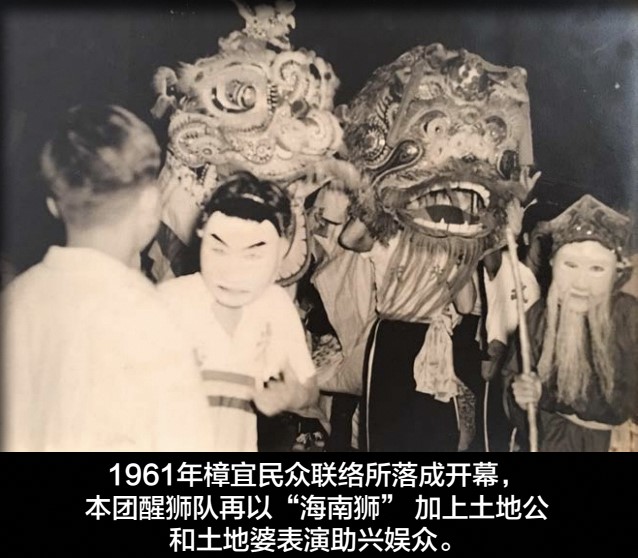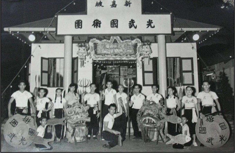 In the early 1950s, Guang Wu Club hired Feng Anbang (冯安邦) as a martial arts and lion dance coach in an attempt to revive the Hainan lion dance, which, due to difficulties in dance stances and construction of the lion’s head, had not been widely performed. Guang Wu martial arts elder Lin Youhe (林猷和师傅) remembered watching a Hainan lion performance only once in his life – in 1941, when he was seven. This was also the last known performance of the Hainan lion dance in Singapore. The Hainan lion performers from the Nanmei Association (南梅同乡会), who were trained by Qiongzhou master Lin Hongyi (琼州拳师林鸿仪), had performed at a national salvation and relief event organised by the Chinese community in Singapore in support of the Second Sino-Japanese War (1937-45).5