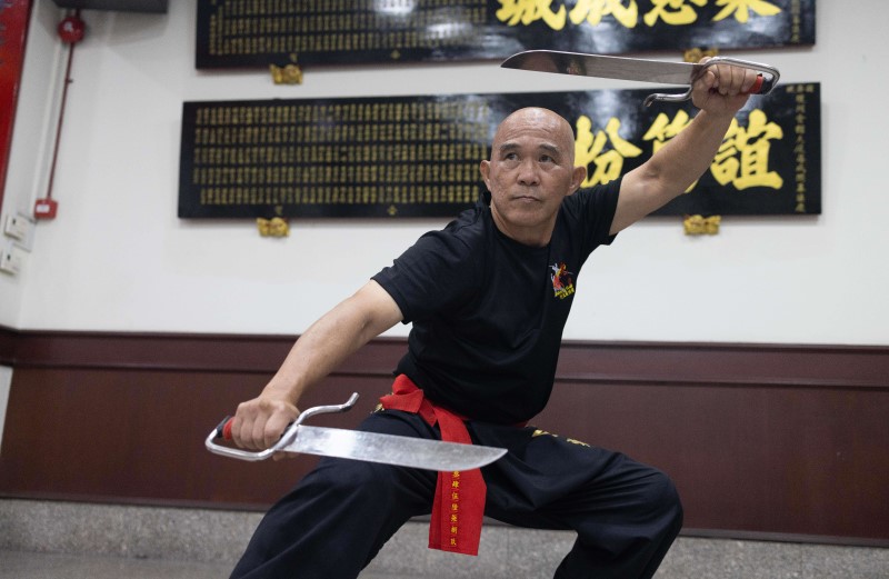 Raymond Foo wielding the 双刀 (shuangdao). Courtesy of Low Jue Ming.