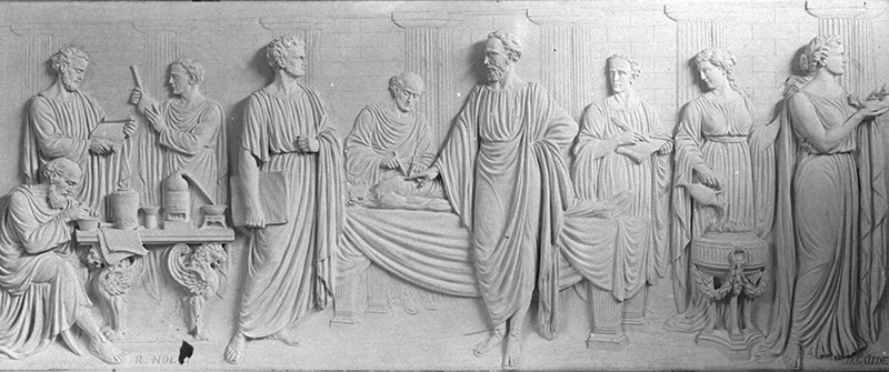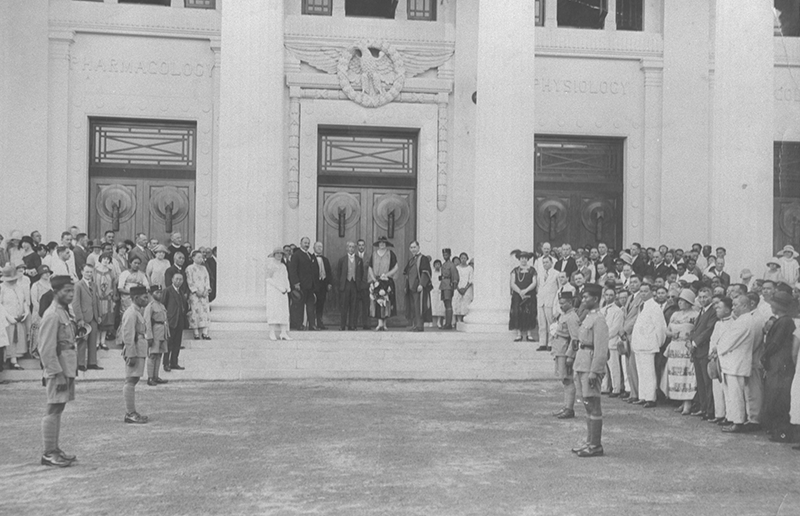 In February 1926, when the King Edward VII College of Medicine opened, the Singapore Free Press and Mercantile Advertiser described Nolli as “the Italian sculptor who was responsible for the sculpture” of the new building. Among the decorative details Nolli fashioned for the facade is an eagle encircled by a wreath, which bears a striking resemblance to 18th-century decorative details of the Royal Villa of Monza near Milan. Nolli also made a “presentation key” designed by Major P.H. Keys – a replica of an ancient Roman statue known as the Minerva Medica – for the official opening of the new building.11