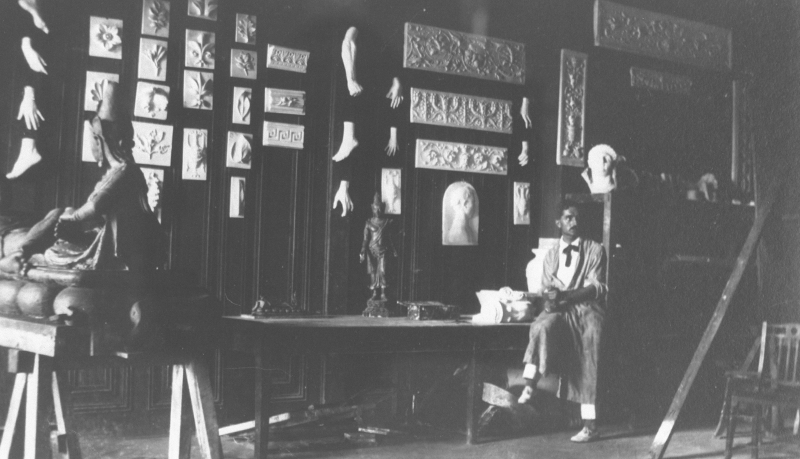 In 1912, Novi found work in Bangkok, Siam (present-day Thailand), where work on the Ananta Samakhom Throne Hall commissioned by King Rama V had been ongoing since 1908. Nolli left Italy in 1913 to join Novi in Bangkok, and both men worked on this project and subsequent commissions for the next few years. Employed at his uncle’s studio, the young Nolli would have been able to perfect his craft while enjoying a steady income and future opportunities in the rapidly developing urban centres of Bangkok and, soon, Singapore.5