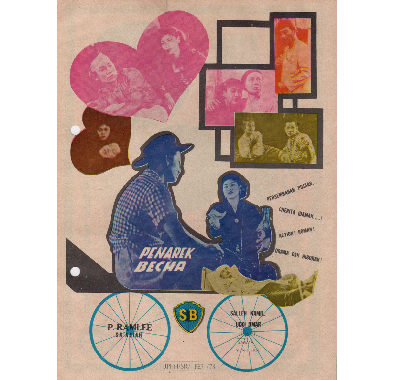 His work echoes the debates that animated the Malay literary and publishing intelligentsia in the 1950s and ’60s. Angkatan Sasterawa ’50 or ASAS ’50 (Malay Literary Movement of the ’50s) called for “Seni untuk Masyarakat” (Art for Society); its motto urging clarity, purpose and attention to everyday experiences.21 Ramlee knew figures from that movement, and Bintang (Star), the film magazine he published between 1953 and 1955, was edited by Fatimah Murad, wife of Asraf, one of the movement’s leading thinkers.22 The realist inclination of films such as Penarek Becha reflects the call by ASAS ’50.
